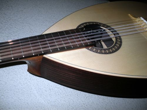 Mandole 12 cordes (amplifiée) Modèle 12 cordes, table épicéa Engelman, fond et éclisses palissandre indien, manche cèdro, touche palissandre, chevalet érable, mécaniques Grover, micro dual Schaller électret / piezzo…
